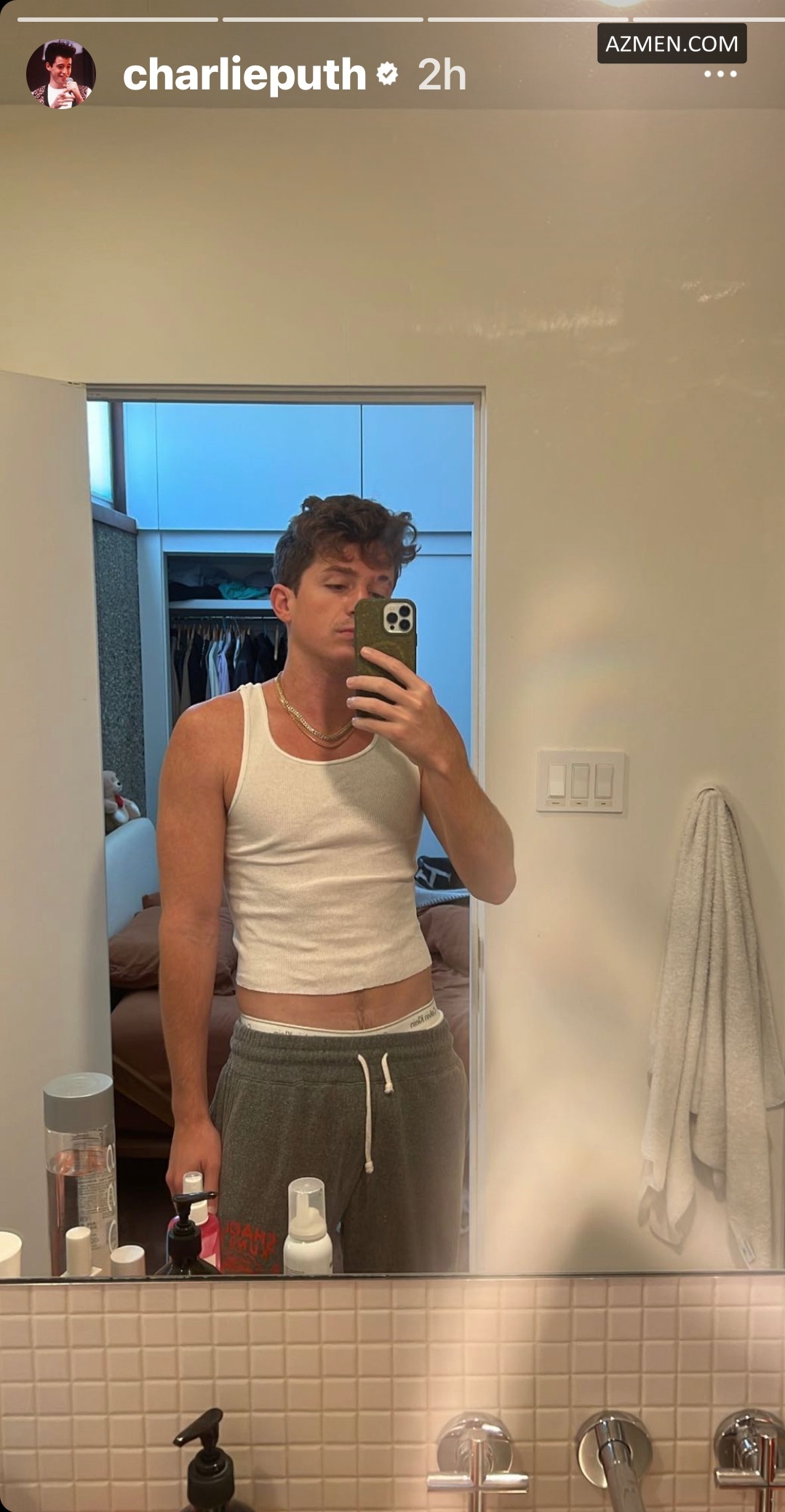 Charlie Puth Taking Selfie In The Bathroom Mirror